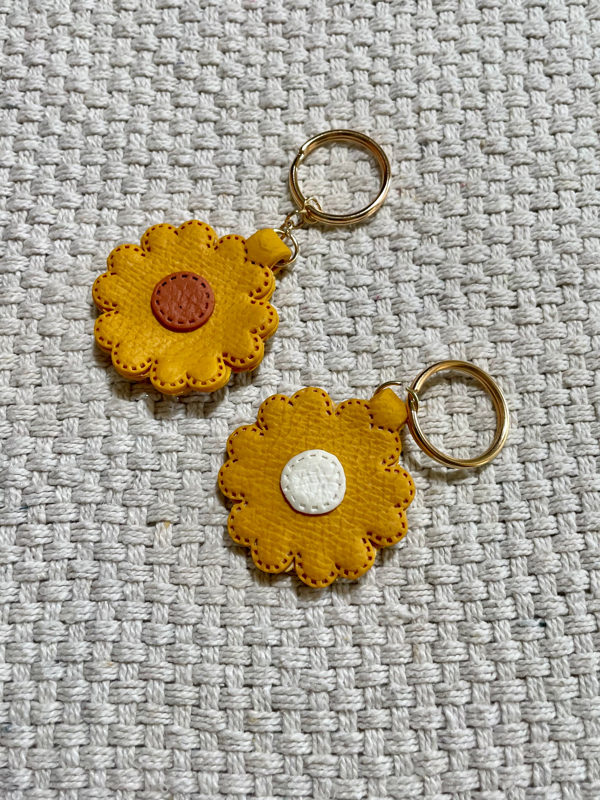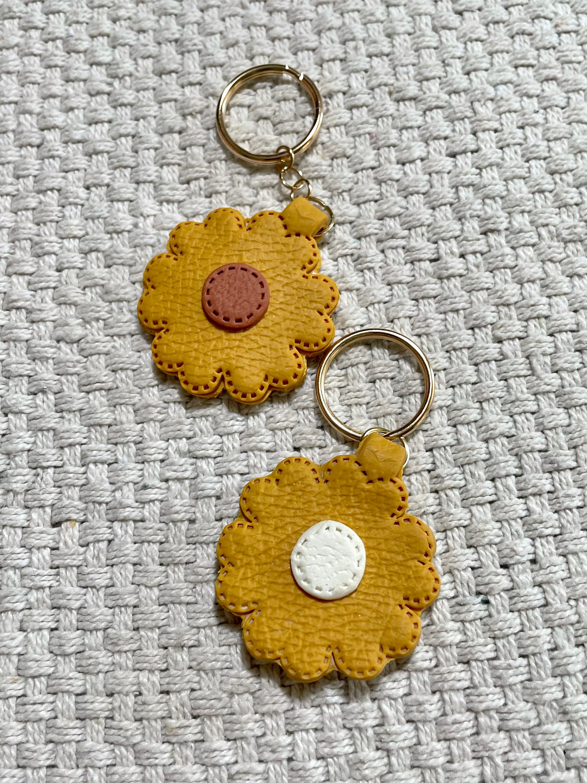All keyrings are hand pressed with a leather press to give that faux leather feel!