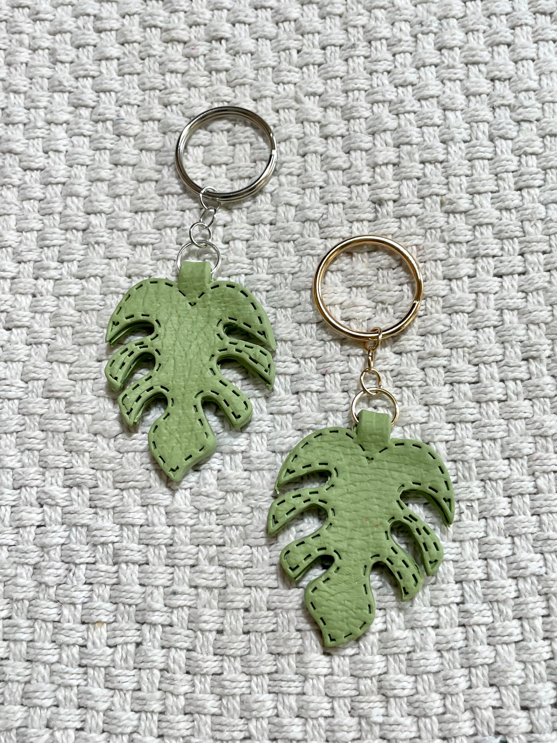All keyrings are hand pressed with a leather press to give that faux leather feel!